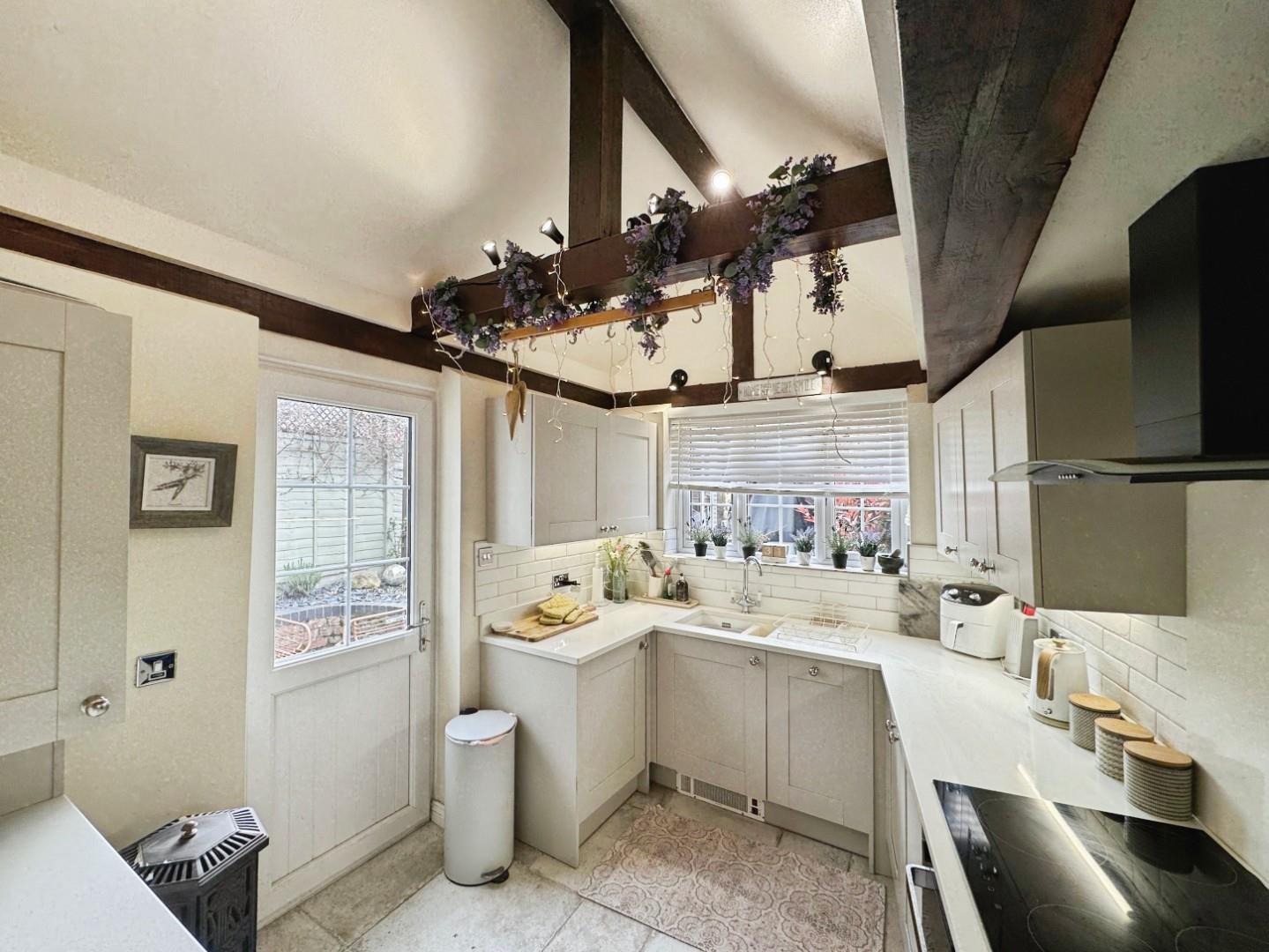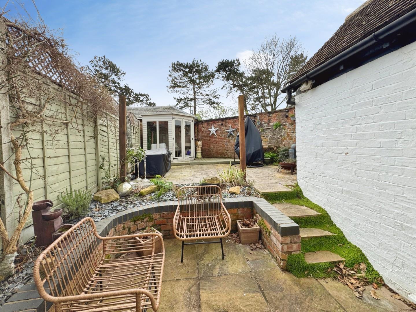 Outside, the pretty courtyard garden offers a serene retreat, perfect for enjoying a morning coffee or hosting summer gatherings. The combination of the cottage's charming exterior and the tranquil outdoor space makes it a truly appealing residence.