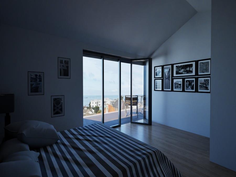 - Tiered roof terraces overlooking the island of Burhou