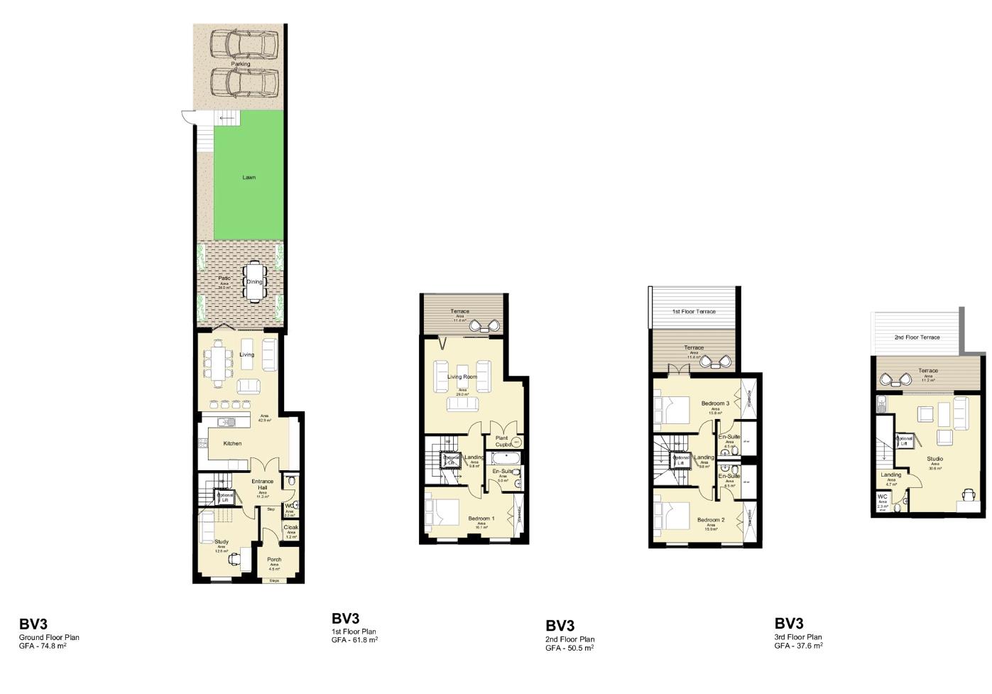 Located on the crest of the Butes, this impressive new development offers a perfect blend of comfort and elegance. Five new town houses, built to a very high specification by an established UK company.